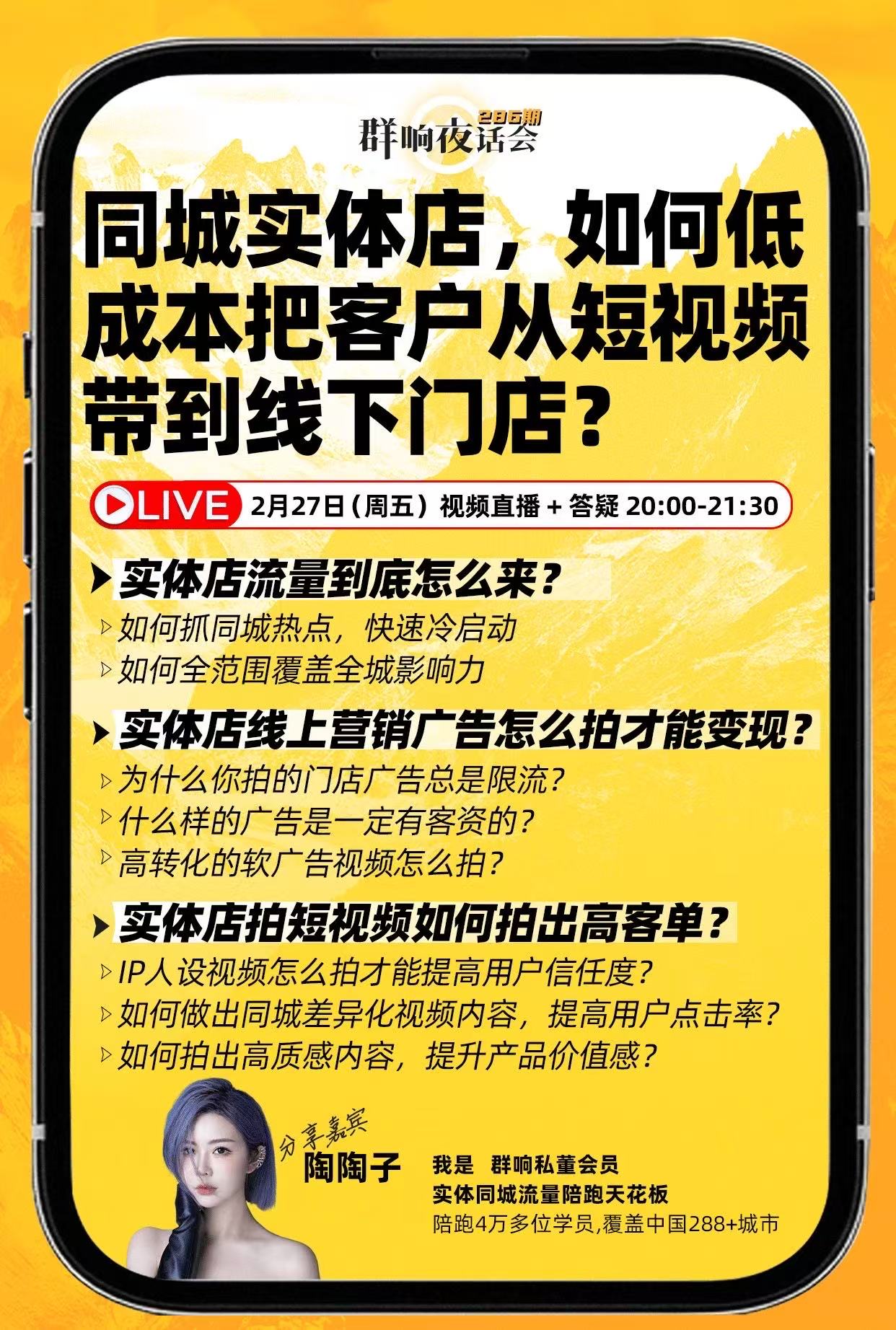夜话会 286|同城实体店,如何低成本把客户从短视频带到线下门店?